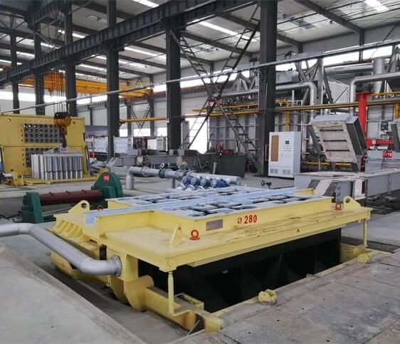 熔铝炉、液槽及浸出箱、提升机、液压倾斜装置、井面支架、假底座、热顶浇注系统。