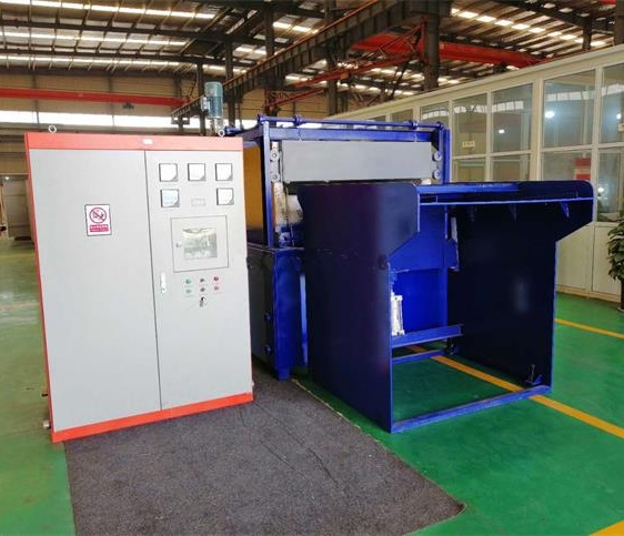 钢壳中频熔炼炉由中频电源柜,补偿电容器组,钢壳炉体、磁轭及水冷电缆、液压站、倾炉控制箱等组成。